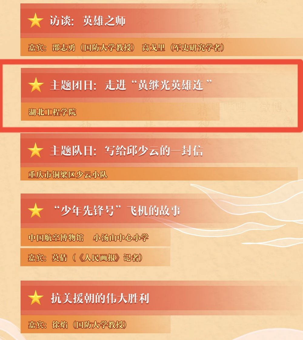 这次主题团日活动由党委宣传部新媒体中心、校团委青年传媒中心、怪兽影像工作室(学生创业团队)联合拍摄制作成了纪录片,被共青团中央、全国少工委选用,在10月25日开展的“致敬抗美援朝”主题云团课、队课中进行全网展示。